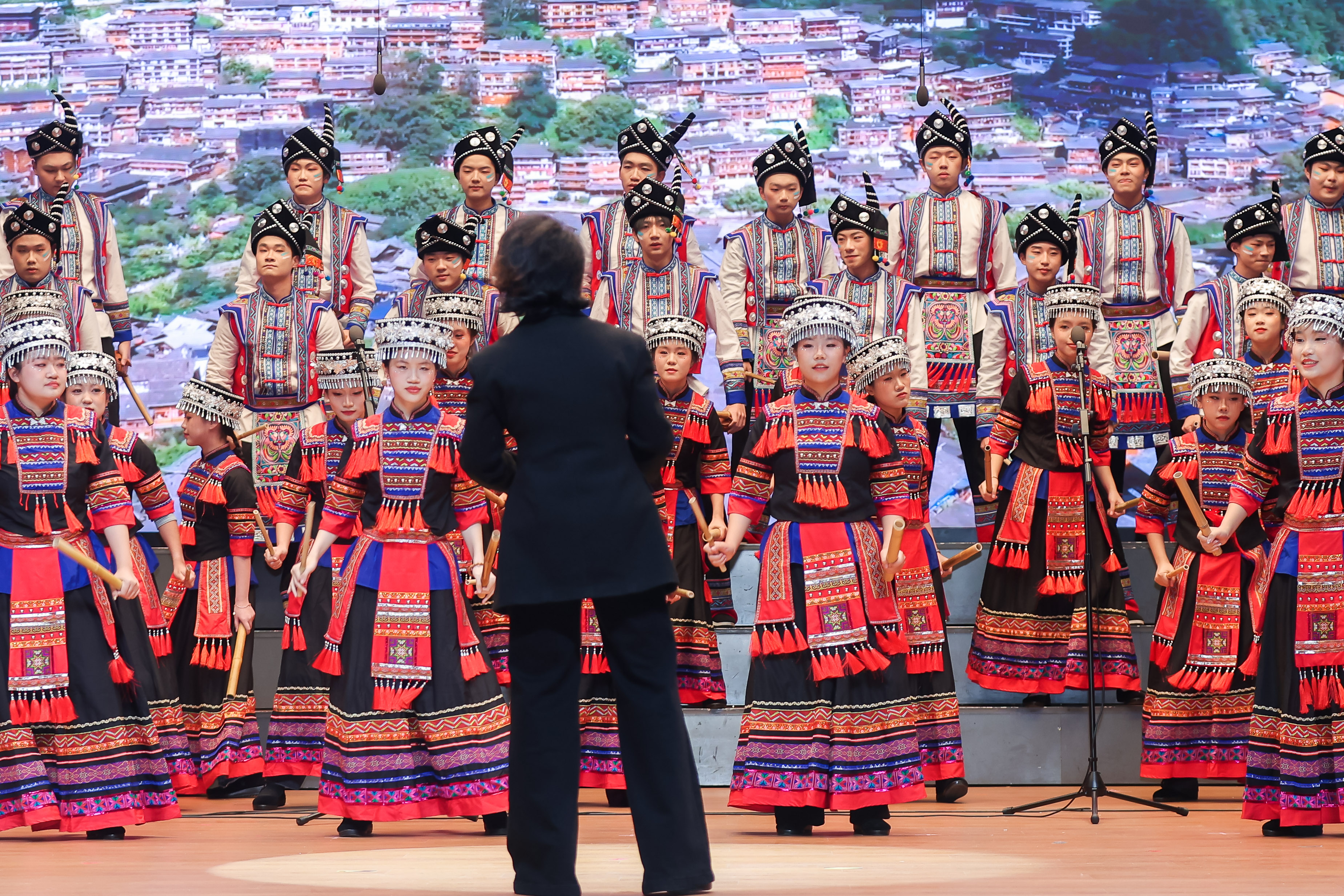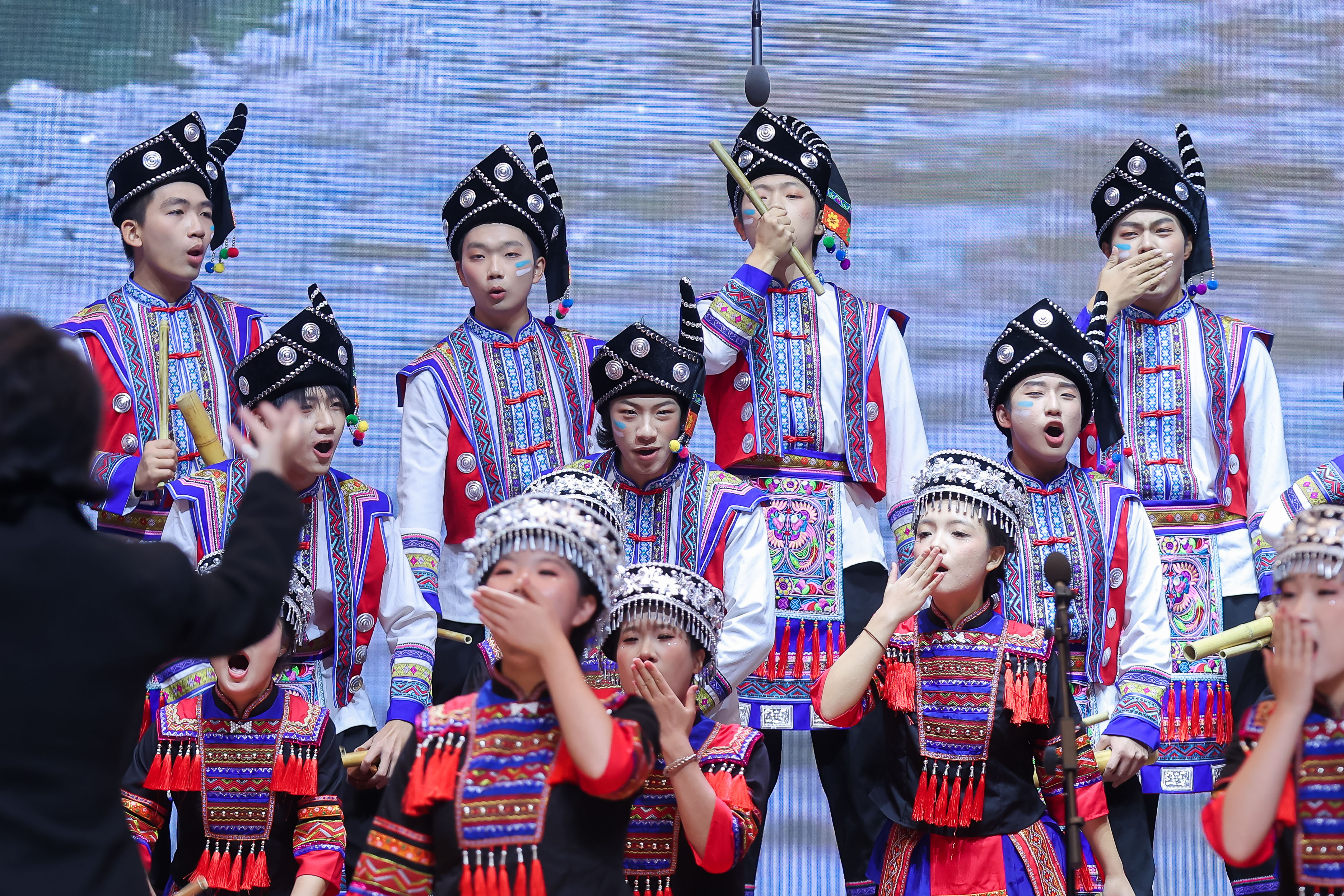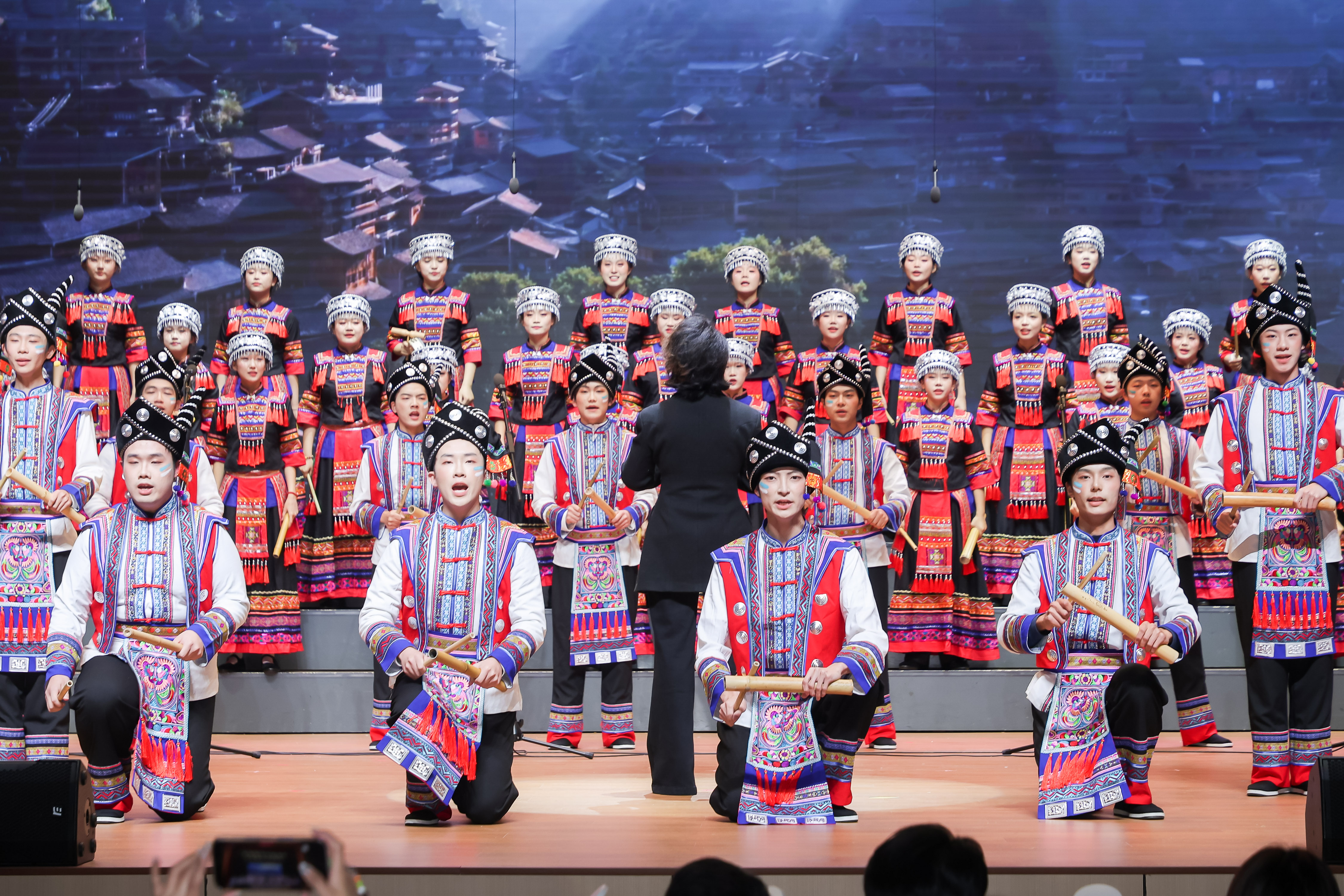 本次决赛,风华合唱团选择了极具民族特色与演唱难度的《山寨猎歌》。该曲目选取了云南基诺族的猎归歌音乐元素,通过发现猎物、步步逼近、成功围捕等场景精彩描述了山寨人民整个狩猎过程的紧张、刺激、神秘而又激动的情绪。基诺族人民在狩猎时的呼唤、模仿动物惊慌失措叫声的歌唱技巧等,巧妙地穿插在音乐作品中,让人仿佛身临其境。