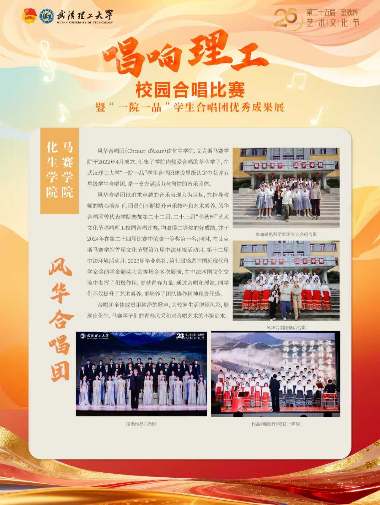 风华合唱团自2022年4月成立以来,连续两年获评学校“五星级合唱团”,已成为亚洲体育博彩平台 美育工作的亮丽名片。亚洲体育博彩平台 以普及教育发现兴趣,以广泛选拔汇聚人才,以基础培训提升素养,面向全体学生开展常态化艺术普及讲座,为零基础同学设置声乐入门、视唱练耳等系统化基础培训。这一系列的美育实践有效夯实了学生艺术团体的群众基础,是亚洲体育博彩平台 “以美育人、以文化人”理念的生动印证。期待风华合唱团承载荣誉,继续高歌,为校园文化建设贡献更多青春力量。