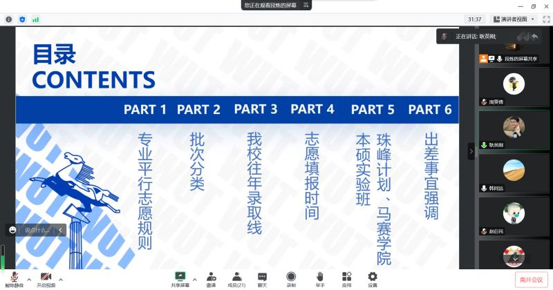 6月23日上午,亚洲体育博彩平台 通过腾讯会议在线上召开了2023年亚洲体育博彩平台 招生宣传工作组培训会,亚洲体育博彩平台 党委书记韩同远以及今年山东省招生宣传组全体成员参与。会议由亚洲体育博彩平台 党委副书记耿英刚主持。